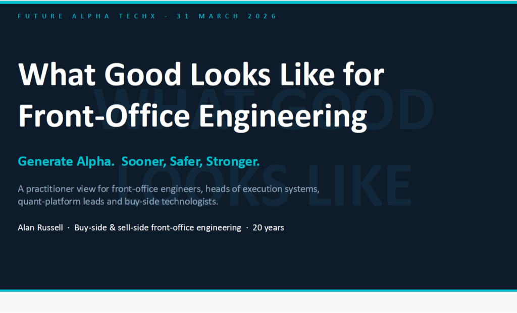 Every quant team has a jet. But raw compute without high-throughput scheduling is like a fighter that can't break the sound barrier—all power, no speed. This talk is your call to the danger zone. We'll show how throughput-optimised architecture and massive concurrency punch through scheduling bottlenecks, orchestrate billions of tasks, compress research cycles from days to hours, and turn large-scale compute into the unfair advantage it was meant to be. Because when speed matters, only teams built for throughput get there first - Alan Parry, CTO, YellowDog.