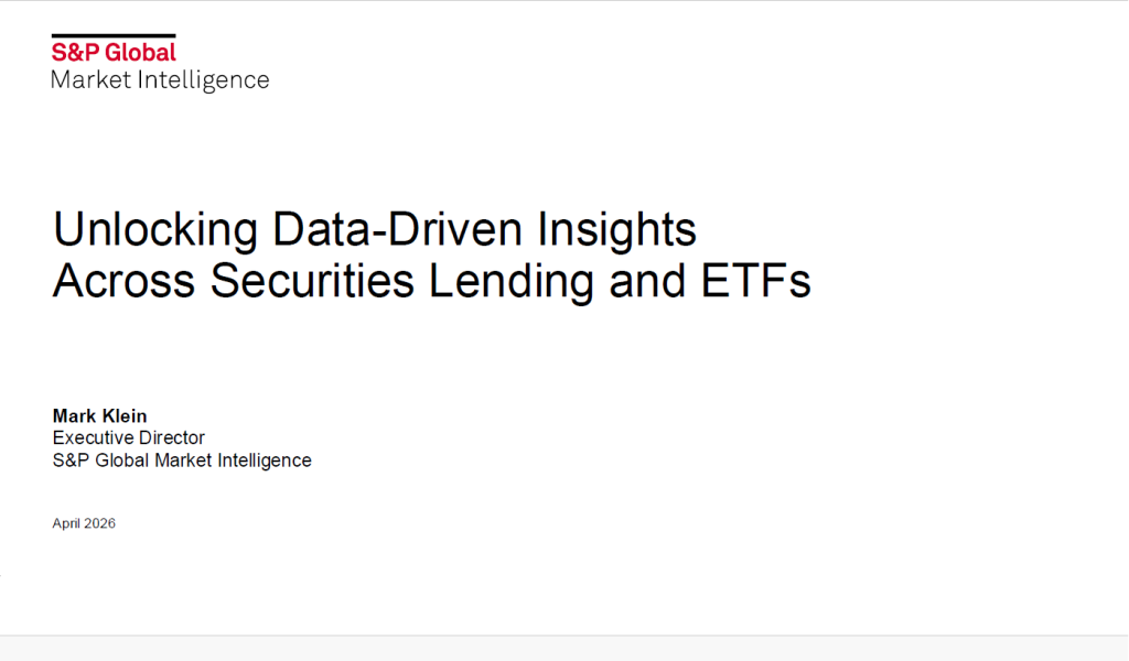 New Securities Finance demand sentiment data, presented at the transaction level, enables users to track short position profitability and assess squeeze risks. The new Securities Finance inventory data delivers transparency into lending supply at the underlying fund level, providing unique insights into institutional fund flows and long positioning. Securities lending data can also be combined with ETF composition data to generate novel factor exposures for ETFs, whereby short sentiment at the ETF level can be calculated using a bottom-up approach. Aggregating short sentiment data at the ETF level can be used for systematic ETF portfolio construction. Together, these advances demonstrate how evolving datasets are driving new opportunities for quantitative strategies - Mark Klein, Executive Director, Head of Business Development - Equity Analytics Products S&P Global Market Intelligence.