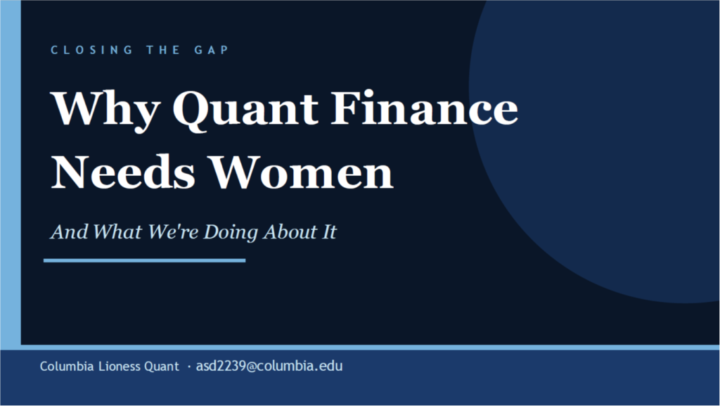 This talk will explore how expanding access to high-income careers like quant finance is essential to tackling the global gender wage gap and how we're building that future through CLQ - Akshara Desai, Co-founder, Columbia Lioness Quantitative.
