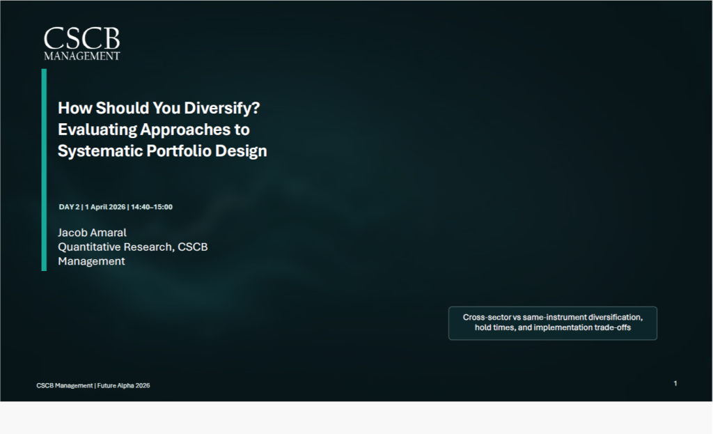 Why diversification matters in quant strategies: risk-adjusted returns, drawdown mitigation, robustness - Jacob Amaral, Head of Quantitative Research, CSCB Management.