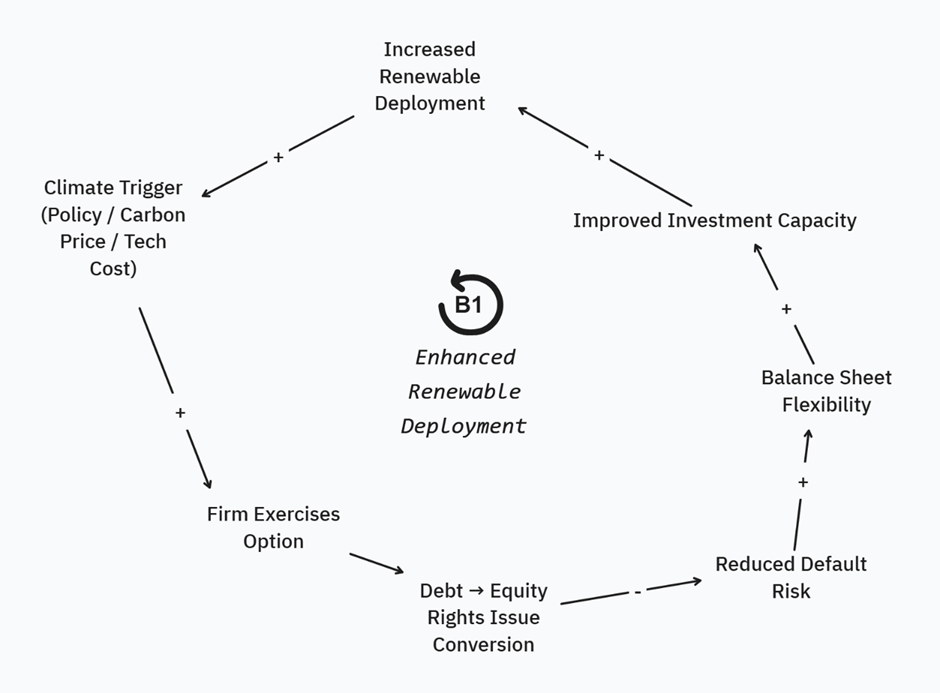 This conversion effectively reduces the firm’s debt burden, freeing capital to reinvest in further decarbonization technologies at a lower per unit capital cost. Equity holders are not diluted unfairly, and the firm gains flexibility to respond dynamically to real cost improvements and deploy further assets or engage in competitive price reduction to win further contracts attracting new equity investors and stronger stewardship discussions from institutional investors.